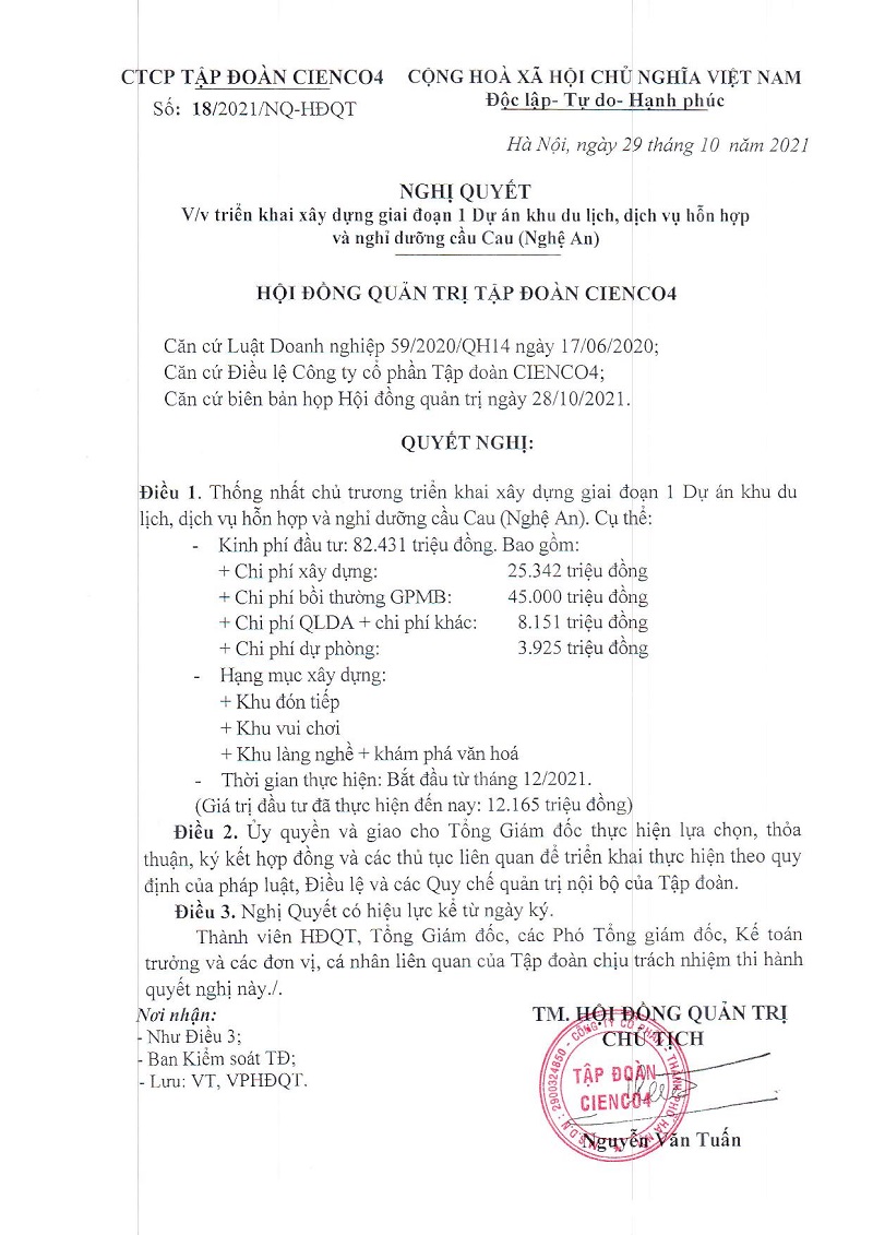 Công bố thông tin, Quan hệ cổ đông CBTT v/v triến khai xây dựng giai đoạn 1 Dự án Khu du lịch, dịch vụ hỗn hợp và nghỉ dưỡng cầu Cau (Nghệ An) Posted on 29 Tháng Mười, 2021 by admin CBTT Nghị quyết của HĐQT v/v nhận chuyển nhượng Khu ẩm thực sinh thái Nghi Hải, Thị xã Cửa Lò, tỉnh Nghệ An CBTT Hủy ngày đăng ký cuối cùng – Mã chứng khoán C4G.