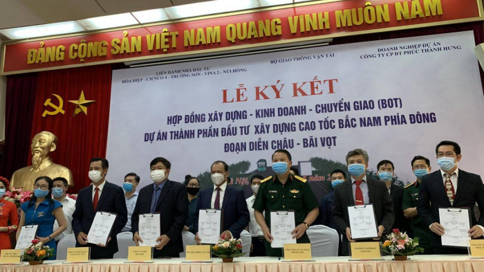 Sáng nay (13/5), Bộ GTVT tổ chức ký hợp đồng BOT dự án thành phần cao tốc Bắc – Nam đoạn Diễn Châu – Bãi Vọt theo hình thức PPP với nhà đầu tư: Liên danh Công ty TNHH Hòa Hiệp – Công ty CP Tập đoàn CIENCO4 – Công ty TNHH Đầu tư Núi Hồng – TCT Xây dựng Trường Sơn – Công ty CP Đầu tư và Xây dựng VINA2 và doanh nghiệp dự án là Công ty CP Đầu tư Phúc Thành Hưng.